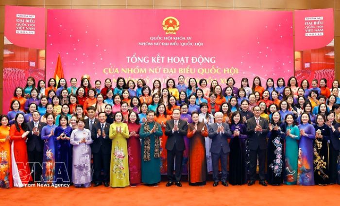 National Assembly Chairman Tran Thanh Man and officials attend a ceremony reviewing the activities of the Group of Women Deputies of the 15th National Assembly in Hanoi on December 9, 2025. (Photo: VNA)
