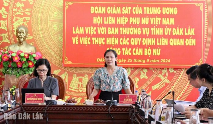 Phát biểu kết luận buổi làm việc, Phó Chủ tịch Hội LHPN Việt Nam Nguyễn Thị Minh Hương ghi nhận, đánh giá cao những kết quả mà tỉnh Đắk Lắk đã đạt được trong việc thực hiện các quy định liên quan đến công tác cán bộ nữ. Đồng thời mong muốn, trên cơ sở Nghị quyết của Trung ương, thời gian tới tỉnh Đắk Lắk sẽ tiếp tục thực hiện hiệu quả các chỉ tiêu, mục tiêu đề ra về công tác cán bộ nữ.