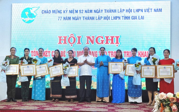 Hội LHPN tỉnh biểu dương, khen thưởng 37 tập thể, cá nhân có thành tích xuất sắc thực hiện tốt chủ đề năm 2022; đồng thời phát động phong trào thi đua “Xây dựng người Phụ nữ Gia Lai thời kỳ mới: tiến bộ trong nhận thức, sáng tạo trong hành động, trách nhiệm với cộng đồng” năm 2023 trong toàn thể cán bộ, hội viên, phụ nữ toàn tỉnh.