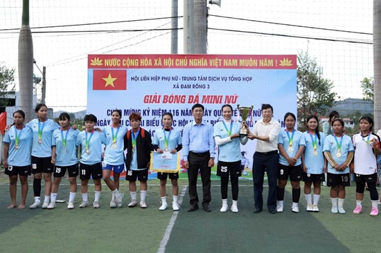 Hội LHPN xã Đam Rông 3 phối hợp với Trung tâm Dịch vụ tổng hợp xã tổ chức Giải bóng đá mini nữ chào mừng Ngày Quốc tế Phụ nữ 8/3