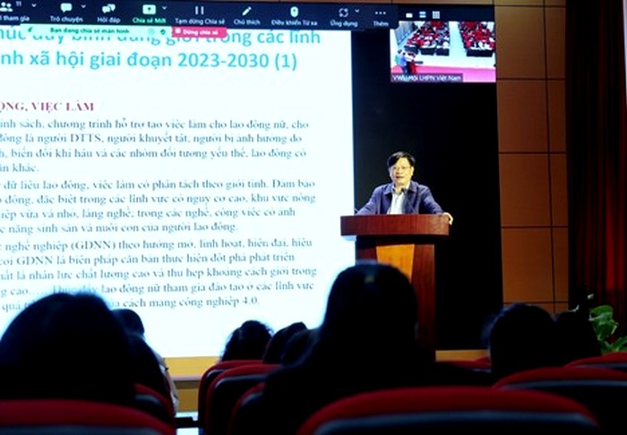 Ms. Nguyen Thi Minh Huong, VWU’s Vice President, Chairwoman of VWU’s Scientific Council, speaks at the seminar Attending the seminar were Ms. Nguyen Thi Minh Huong - VWU’s Vice President, Chairwoman of VWU’s Scientific Council, Ms. Nguyen Thi Thu Hien - VWU’s Vice President, and many experts from ministries, sectors and international organizations. The seminar was held in person in Hanoi and online in other provinces and cities.
