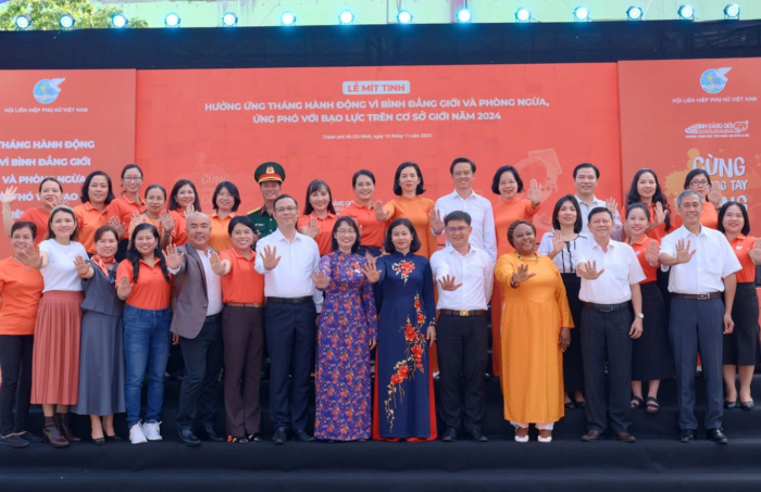 Sáng 16/11/2024, tại TPHCM, Hội LHPN Việt Nam tổ chức Mít tinh hưởng ứng Tháng hành động vì bình đẳng giới và phòng ngừa, ứng phó với bạo lực trên cơ sở giới năm 2024 với chủ đề “Cùng chung tay, Cùng thay đổi”. -