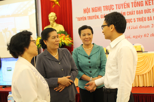 Hội nghị trực tuyến tổng kết 5 năm triển khai hai đề án “Tuyên truyền, giáo dục phẩm chất đạo đức phụ nữ Việt Nam thời kỳ CNH- HĐH đất nước” (đề án 343) và “Giáo dục 5 triệu bà mẹ nuôi dạy con tốt” (Đề án 704) giai đoạn 2010- 2015 đã được nghe Phó Thủ tướng Vũ Đức Đam, Chủ tịch Hội LHPN Việt Nam Nguyễn Thị Thanh Hòa phát biểu chỉ đạo. Tại hội nghị cũng có nhiều ý kiến và tham luận của đại diện các bộ, ban, ngành, đoàn thể TW và các tỉnh, thành xoay quanh những giá trị thiết thực, cần thiết khi triển khai hai Đề án; những hành động, kinh nghiệm khi cùng tham gia thực hiện đề án; mong muốn, kiến nghị, đề xuất việc tiếp tục triển khai các hoạt động của hai Đề án trong thời gian tới.