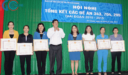 Ngày 26/8/2015, Hội LHPN tỉnh An Giang đã tổ chức Hội nghị tổng kết 5 năm công tác triển khai thực hiện 3 Đề án “Tuyên truyền, giáo dục phẩm chất đạo đức phụ nữ Việt Nam thời kỳ đẩy mạnh CNH, HĐH đất nước” (Đề án 343), “Giáo dục 5 triệu bà mẹ nuôi, dạy con tốt” (Đề án 704), “Hỗ trợ phụ nữ học nghề, tạo việc làm” (Đề án 295) giai đoạn 2010 – 2015. Đến tham dự hội nghị có đồng chí Phạm Biên Cương, Phó Bí thư tỉnh ủy An Giang; đồng chí Hồ Việt Hiệp – Phó Chủ tịch UBND tỉnh, Trưởng Ban Chỉ đạo chủ trì hội nghị. -
