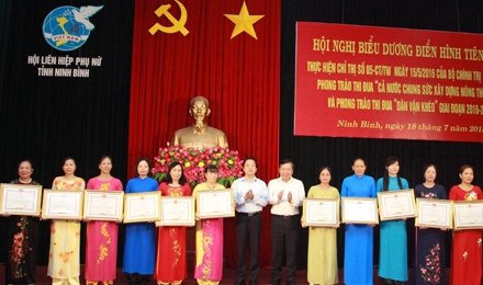 Sáng 18/7, Hội Liên hiệp phụ nữ tỉnh Ninh Bình tổ chức hội nghị biểu dương điển hình tiên tiến thực hiện Chỉ thị 05 của Bộ Chính trị, phong trào thi đua “Cả nước chung sức xây dựng nông thôn mới” và phong trào thi đua “Dân vận khéo” giai đoạn 2016-2018. -