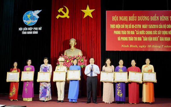 Hội LHPN tỉnh Ninh Bình biểu dương điển hình tiên tiến thực hiện Chỉ thị 05, phong trào nông thôn mới, dân vận khéo giai đoạn 2016 - 2018