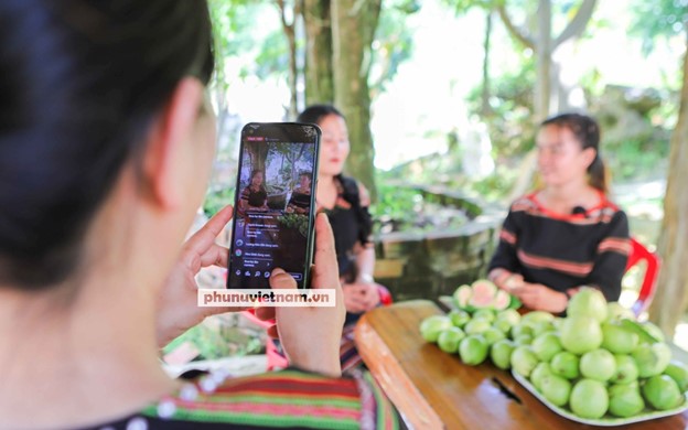 Tại xã Sơn Long, huyện Sơn Tây, những người phụ nữ dân tộc Ca Dong mạnh dạn ứng dụng công nghệ thông tin, livestream giới thiệu giống ổi rubi ruột đỏ, giúp kéo gần khách hàng với sản phẩm hàng hóa ở một xã xa xôi nhất của huyện miền núi xa nhất tỉnh Quảng Ngãi. -