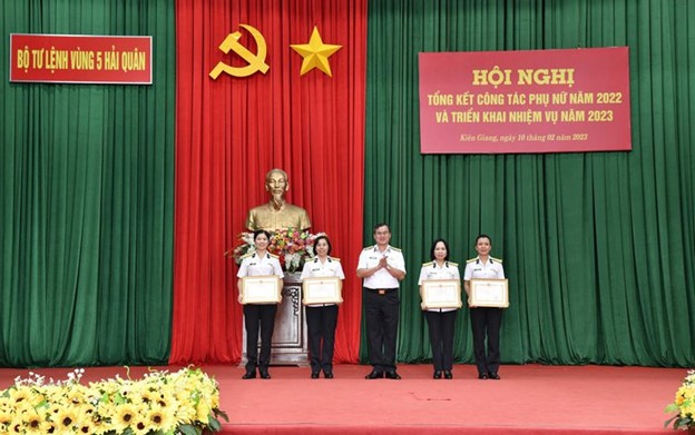 Chiều 10/2, tại TP. Phú Quốc, tỉnh Kiên Giang, Hội Phụ nữ Vùng 5 Hải quân tổ chức Hội nghị tổng kết công tác phụ nữ năm 2022 và triển khai nhiệm vụ năm 2023. Chuẩn Đô đốc Nguyễn Đăng Tiến, Chính ủy Vùng đến dự và chỉ đạo. -