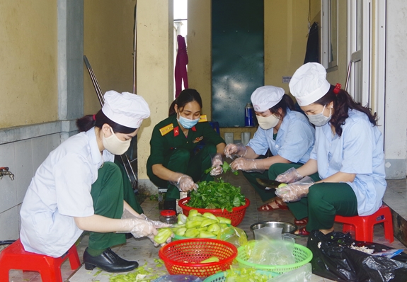 Trong những ngày qua, cùng với các lực lượng tham gia phục vụ ở các khu cách ly tập trung của tỉnh Hà Tĩnh, những nữ quân nhân của các cơ quan, đơn vị được giao nhiệm vụ bảo đảm phục vụ ở các khu cách ly tập trung đã không quản ngày đêm, tạm gác việc gia đình để chăm sóc bữa ăn, giấc ngủ cho những người đang cách ly. -