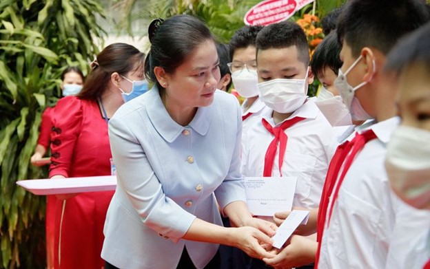 Sáng 5/9, Phó Chủ tịch Thường trực Hội LHPN Việt Nam Đỗ Thị Thu Thảo cùng Ủy viên dự khuyết TƯ Đảng - Phó Chủ tịch Hội LHPN Việt Nam Tôn Ngọc Hạnh đã dự khai giảng, trao học bổng cho học sinh mồ côi, có hoàn cảnh khó khăn tại TPHCM, Bình Dương. -