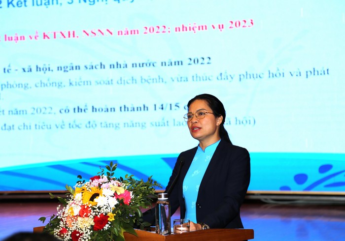 Diễn đàn kinh tế - xã hội Việt Nam 2022 có sự tham dự của Thống đốc Ngân hàng Nhà nước Nguyễn Thị Hồng, Phó Chủ tịch Hội LHPN Việt Nam Trần Lan Phương, Phó Chủ tịch Hiệp hội Nữ doanh nhân Việt Nam Hà Thị Thu Thanh. -