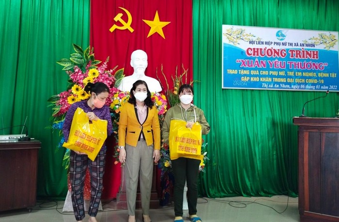 Hội LHPN thị xã An Nhơn, tỉnh Bình Định vừa tổ chức chương trình “Xuân yêu thương” năm 2022 chăm lo cho phụ nữ và trẻ em nghèo, bệnh tật, gặp khó khăn trong đại dịch Covid-19. -
