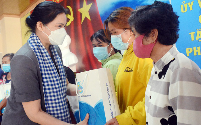 Ngày 23/1, bà Hà Thị Nga, Ủy viên TƯ Đảng, Chủ tịch Hội LHPN Việt Nam, đã thăm, tặng quà cho hội viên phụ nữ và trẻ em mồ côi gặp khó khăn do ảnh hưởng của dịch Covid-19 tại tỉnh Đồng Tháp nhân dịp Tết Nguyên đán Nhâm Dần 2022. -