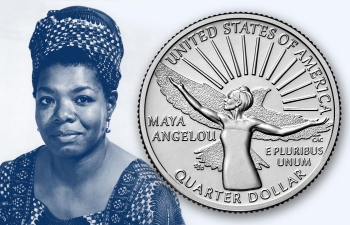 Theo The New York Times, cố nhà thơ, nhà hoạt động xã hội Maya Angelou là người phụ nữ da màu đầu tiên được khắc hình trên đồng 25 xu của Mỹ. -