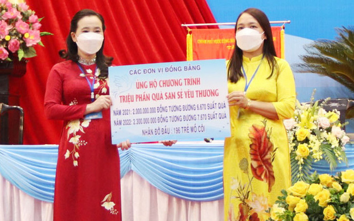 Tính đến ngày 16/12/2021, chương trình "Triệu phần quà san sẻ yêu thương" do Hội LHPN Việt Nam phát động đã vận động được 219,508 tỷ đồng tương đương 731.693 phần quà quyên góp, ủng hộ cho phụ nữ, trẻ em và người dân đang gặp khó khăn do dịch bệnh. -