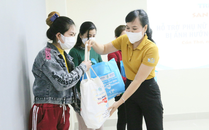 Phụ nữ di cư hồi hương gặp khó khăn, bị ảnh hưởng bởi dịch Covid-19 trên địa bàn quận Đồ Sơn, TP Hải Phòng, đã được nhận những phần quà "san sẻ yêu thương" từ Hội LHPN Việt Nam trao trặng. -
