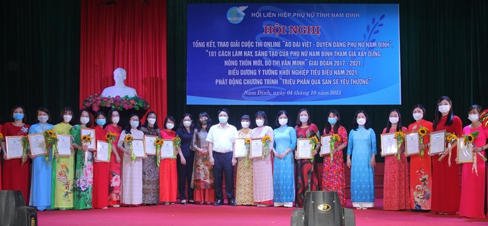Ngày 04/10/2021, Hội LHPN tỉnh Nam Định tổ chức Hội nghị tổng kết, trao giải các cuộc thi và biểu dương Phụ nữ khởi nghiệp tiêu biểu năm 2021; đồng thời phát động chương trình “Triệu phần quà san sẻ yêu thương”. -