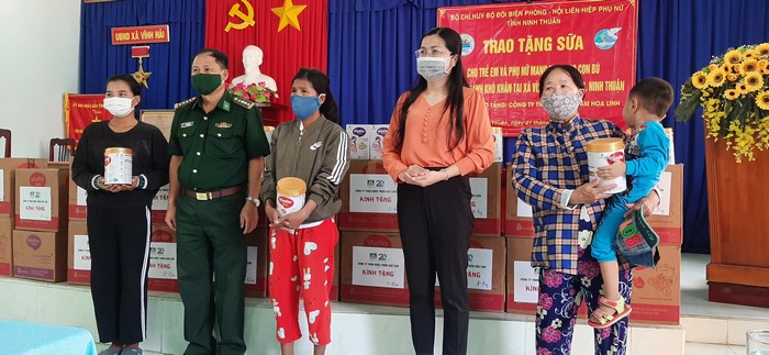Vừa qua, Hội LHPN tỉnh Ninh Thuận phối hợp với Bộ Chỉ huy Bộ đội Biên phòng tỉnh tổ chức trao tặng sữa cho phụ nữ mang thai và trẻ em từ 0-6 tuổi có hoàn cảnh khó khăn tại xã Vĩnh Hải, huyện Ninh Hải. -