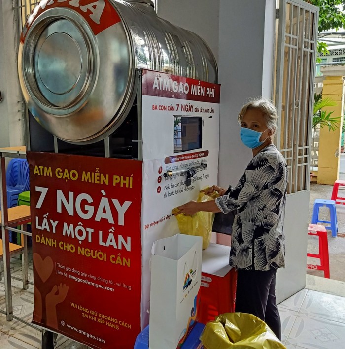 Cây ATM gạo miễn phí do Hội LHPN quận 8 kết nối sự hỗ trợ của Axys Group, đã phối hợp Ủy ban nhân dân phường 10 tổ chức triển khai rộng rãi đến người dân trên địa bàn với phương châm “Không để ai lại phía sau”. -