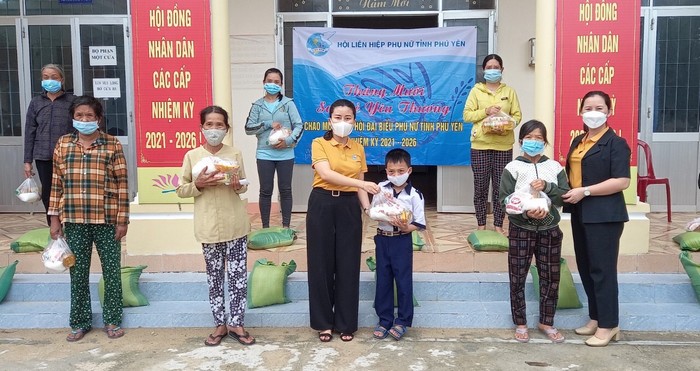 Sáng ngày 07/10, bà Lê Đào An Xuân, Chủ tịch Hội LHPN tỉnh Phú Yên đến thăm hỏi và trao tặng 90 suất quà trj giá 18 triệu đồng, mỗi suất gồm 10 kg gạo và các nhu yếu phẩm như đường, dầu ăn, bột nêm, cho các gia đình hội viên, phụ nữ thuộc hộ... -