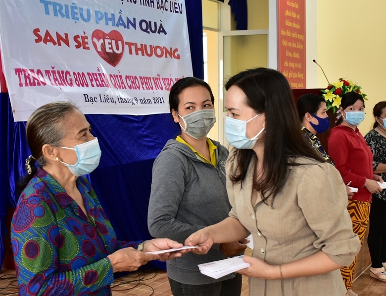 Hưởng ứng Chương trình Triệu phần quà san sẻ yêu thương, Hội LHPN tỉnh Đắk Lắk và Bạc Liêu đã trao hàng trăm suất quà đến với phụ nữ, trẻ em khó khăn bởi dịch bệnh Covid-19 cùng các lực lượng tuyến đầu chống dịch. -