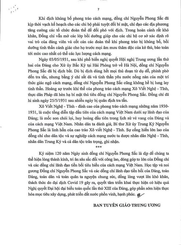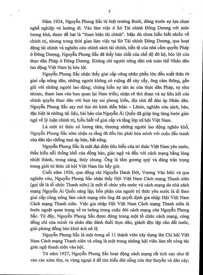 Đề cương Tuyên truyền kỷ niệm 120 năm Ngày sinh đồng chí Nguyễn Phong Sắc (01/02/1902 - 01/02/2022)