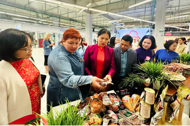 Chiều cùng ngày, đoàn công tác đã có chuyến tham quan Nhà thương mại quốc gia Belarus. Đây là trung tâm thương mại đầu tiên của đất nước Belarus để trưng bày và bán hàng hoá sản xuất từ mọi miền của Belarus. Trong không khí chân tình, trọng thị, đại diện lãnh đạo Trung tâm và bà Lazarevich Nadezhda Anatolyevna, Phó Chủ tịch thứ nhất Uỷ ban điều hành thành phố Minsk, Phó Chủ tịch Hội Phụ nữ Belarus đã chia sẻ, giới thiệu với Đoàn công tác của Trung ương Hội những sản phẩm được trưng bày và buôn bán tại đây (bánh, kẹo, socola, nước uống, các sản phẩm thời trang, mỹ phẩm, đồ trang trí nội thất…). Đoàn cũng được thưởng thức chương trình nghệ thuật do thiếu nhi Belarus biểu diễn dành tặng riêng cho Đoàn.