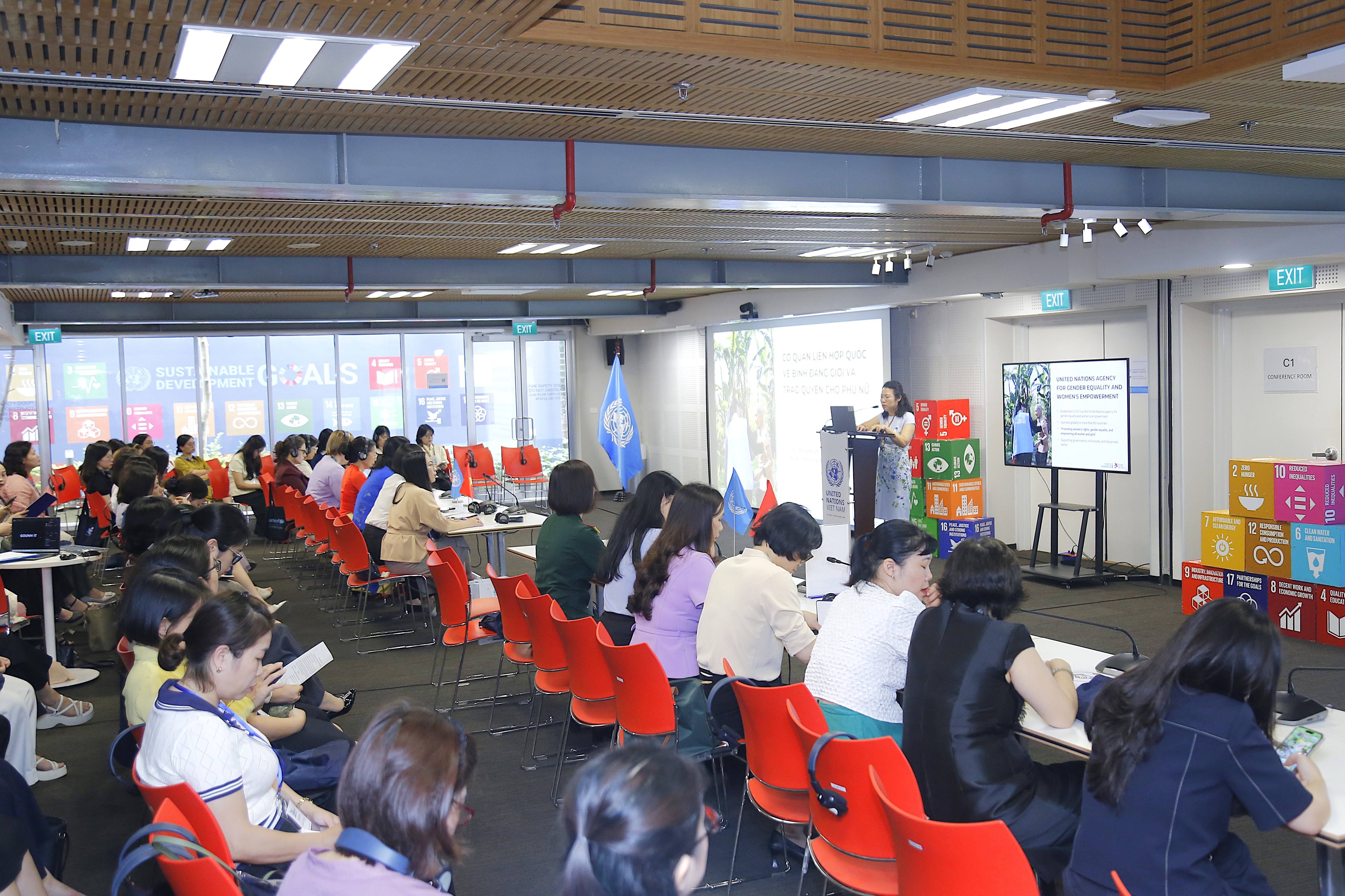 Các đại diện UN Women Việt Nam chia sẻ một số chuyên đề tại chương trình