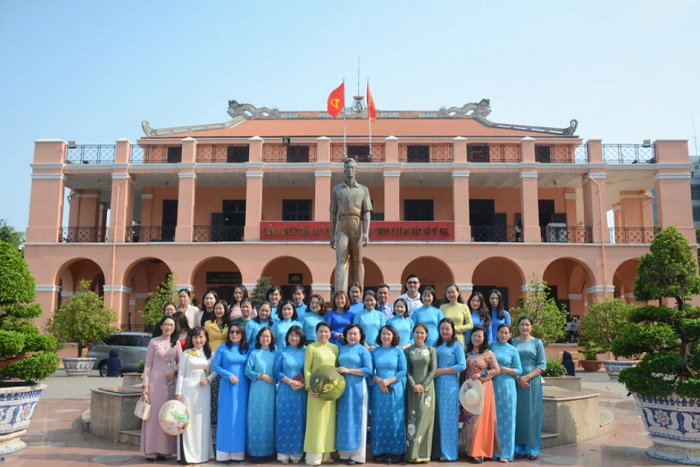 Đoàn chụp hình lưu niệm tại Bảo tàng Hồ Chí Minh chi nhánh TPHCM.