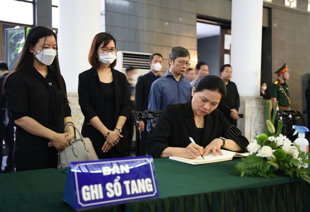 Chủ tịch Hội LHPN Việt Nam Hà Thị Nga ghi sổ tang bày tỏ sự tiếc thương trước sự ra đi của nguyên Phó Thủ tướng Vũ Khoan