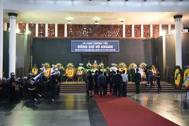 Đoàn Hội LHPN Việt Nam do Chủ tịch Hội LHPN Việt Nam Hà Thị Nga dẫn đầu vào viếng nguyên Phó Thủ tướng Vũ Khoan. Đúng 8h ngày 27/6/2023, lễ viếng nguyên Phó Thủ tướng Chính phủ Vũ Khoan được cử hành trọng thể.