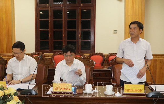Đồng chí Nguyễn Anh Chức, Ủy viên BTV Tỉnh ủy, Phó Chủ tịch Thường trực UBND tỉnh phát biểu tại buổi làm việc.