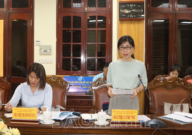 Đồng chí Hà Thị Nga, Ủy viên Trung ương Đảng, Bí thư Đảng đoàn, Chủ tịch Hội Liên hiệp Phụ nữ Việt Nam, Trưởng đoàn khảo sát phát biểu tại buổi làm việc. Tiếp và làm việc với Đoàn có đồng chí Đinh Thị Lụa, Phó Bí thư Thường trực Tỉnh ủy; đại diện Thường trực HĐND, lãnh đạo UBND tỉnh; đại diện lãnh đạo Ban Tổ chức, Ban Dân vận Tỉnh ủy; Ủy ban MTTQ tỉnh và các tổ chức chính trị xã hội tỉnh; Văn phòng Tỉnh ủy; Văn phòng UBND tỉnh.