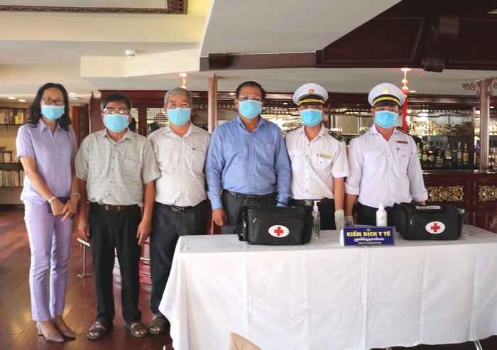 Bác sĩ Oanh (bìa trái) cùng đoàn kiểm tra phòng chống dịch Corona ở Cửa khẩu Biên giới Thường Phước