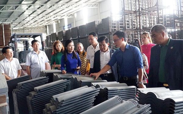 Công ty LSG Investment Campuchia tham quan nhà máy sản xuất ngói màu của Công ty TNHH Nasaki Việt Nam tại Khu công nghiệp phía Nam, tỉnh Yên Bái