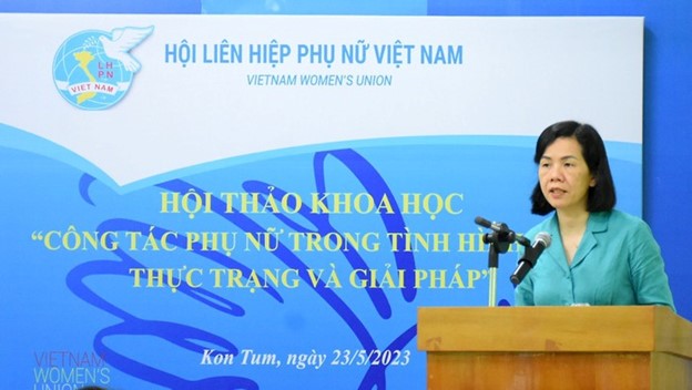 Hội thảo Khoa học với chủ đề "Công tác phụ nữ trong tình hình mới: Thực trạng và giải pháp" do Hội LHPN Việt Nam tổ chức tại Kon Tum ngày 23/5/2023 Bà Nguyễn Thị Minh Hương, Phó Chủ tịch Hội LHPN Việt Nam và ông Nguyễn Văn Hòa, Phó Bí thư Tỉnh ủy Kon Tum, đồng chủ trì Hội thảo.