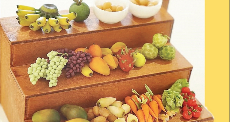 Nếu yêu thích nghệ thuật miniature (làm các đồ vật mini, tí hon), bạn có thể tham khảo ý tưởng làm trái cây, mâm ngũ quả từ đất sét độc đáo của chị Nguyễn Ánh Hồng (Hà Nội). Chị Hồng cho biết, sản phẩm có kích thước nhỏ hơn 12 lần so với bản gốc. Trong đó, công đoạn khó nhất là tạo chi tiết và tạo màu để sản phẩm giống thật vì mỗi loại rau củ có một đặc trưng riêng. Đất sét qua các công đoạn: nhào đất, trộn màu, tạo hình chi tiết, vẽ màu, phủ bóng, phủ bảo vệ sẽ "hô biến" thành những loại trái cây tí hon, để trang trí, làm quà tặng trong dịp Tết.