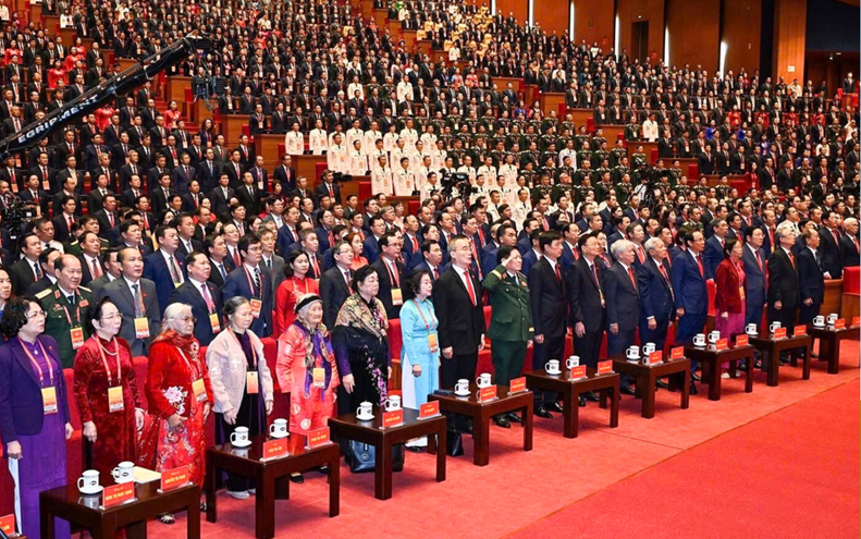 Các đại biểu dự phiên khai mạc. (Ảnh: TTXVN) Với chủ đề “Dưới lá cờ vẻ vang của Đảng, chung sức, đồng lòng thực hiện thắng lợi các mục tiêu phát triển đất nước đến năm 2030; tự chủ chiến lược, tự cường, tự tin, tiến mạnh trong kỷ nguyên vươn mình của dân tộc, vì hòa bình, độc lập, dân chủ, giàu mạnh, phồn vinh, văn minh, hạnh phúc, vững bước đi lên chủ nghĩa xã hội”, Đại hội đại biểu toàn quốc lần thứ XIV của Đảng Cộng sản Việt Nam chính thức khai mạc sáng 20/1/2026 tại Trung tâm Hội nghị Quốc gia, Thủ đô Hà Nội.