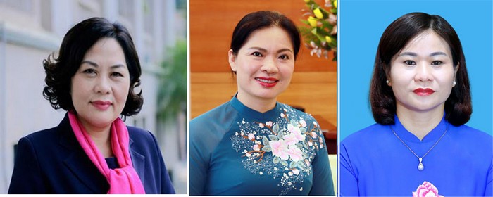3 nữ ủy viên lần đầu tham gia Ban chấp hành Trung ương Đảng (từ trái sang: Thống đốc Ngân hàng Nhà nước Việt Nam Nguyễn Thị Hồng; Chủ tịch Hội LHPN Việt Nam Hà Thị Nga; Phó Bí thư thường trực Thành ủy Hà Nội Nguyễn Thị Tuyến.
