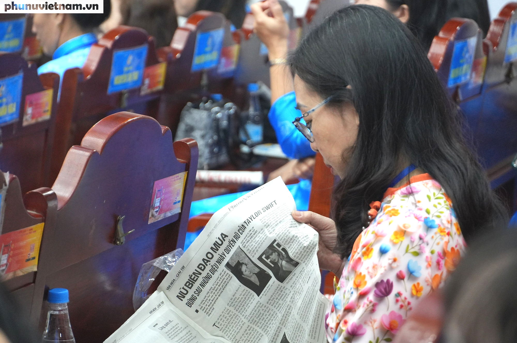 Các đại biểu tranh thủ đọc Báo PNVN trước giờ khai mạc Đại hội Tham dự Đại hội, về phía TƯ Hội LHPN Việt Nam có các đồng chí: Nguyễn Thị Tuyến, Ủy viên TƯ Đảng, Phó Chủ tịch Uỷ ban TƯ MTTQ Việt Nam, Chủ tịch Hội LHPN Việt Nam; Nguyễn Thị Thu Hiền, Phó Chủ tịch Hội LHPN Việt Nam.