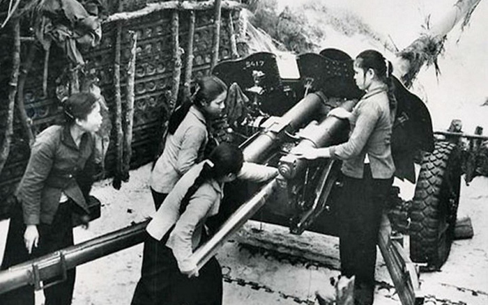 Các nữ pháo binh Ngư Thủy. Ảnh tư liệu Trong cuộc kháng chiến chống đế quốc Mỹ xâm lược ở miền Nam và chống chiến tranh phá hoại ở miền Bắc, đất nước ta thường xuyên hứng chịu bom đạn của quân thù tàn phá cơ sở vật chất và con người, nên xác định, bất kỳ hoàn cảnh nào, chiến tranh ác liệt đến đâu cũng phải vừa chiến đấu, tấn công tiêu diệt địch, vừa đảm bảo được sản xuất.