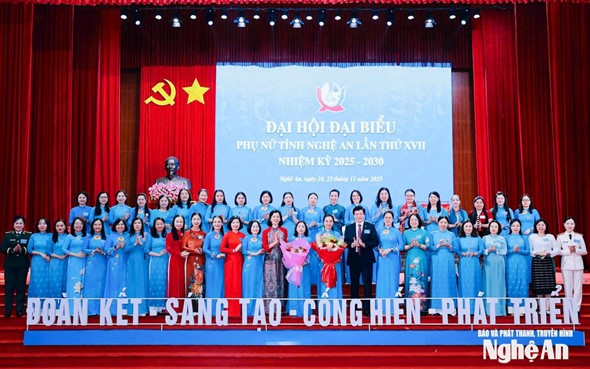 Đại hội Đại biểu Phụ nữ tỉnh Nghệ An lần thứ XVII, nhiệm kỳ 2025 - 2030, diễn ra trong hai ngày, 24-25/11 với chủ đề "Đoàn kết - Sáng tạo - Cống hiến - Phát triển"