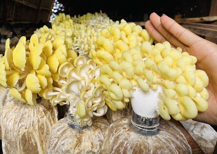 Hiện tại, chị nhân rộng mô hình ra 5 nhà trại, mỗi trại rộng 200m2, mỗi tháng cung cấp từ vài trăm kg đến cả tấn nấm tươi ra thị trường với giá dao động từ 50 nghìn đồng đến 350 nghìn đồng/kg, tùy loại.