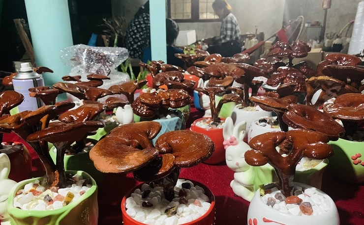 Đặc biệt, dịp Tết năm nay, chị còn làm bonsai nấm linh chi với giá từ 200-500 nghìn đồng/chậu phục vụ nhu cầu khách hàng.