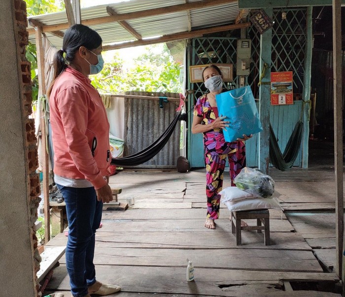 Cô Văn Kim Chưởng (phải ảnh), chi hội trưởng ấp Trung 1, thị trấn Phú Mỹ, huyện Phú Tân nhận "phần quà san sẻ yêu thương" Chủ tịch Hội LHPN tỉnh An Giang Lê Bích Phượng cho biết: ngay sau khi Hội LHPN tỉnh ban hành kế hoạch thực hiện Chương trình “Triệu phần quà san sẻ yêu thương”, chỉ trong thời gian rất ngắn, Chương trình đã nhận được sự hưởng ứng nhiệt tình của các cấp Hội, hội viên và nhiều tập thể, đơn vị, cá nhân trong tỉnh tham gia ủng hộ. Nhiều phần quà được trao từ Chương trình đã kịp thời hỗ trợ, giúp đỡ gia đình hội viên, phụ nữ, trẻ em có hoàn cảnh khó khăn, là nguồn động lực to lớn tạo thêm sức mạnh cùng với các cấp chính quyền chung tay đẩy lùi dịch bệnh.