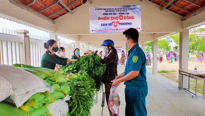 “Phiên chợ 0 đồng - san sẻ yêu thương” tại xã Lộc An, huyện Đất Đỏ Theo đó, thông qua phiên chợ 0 đồng, 500 phần quà, mỗi phần trị giá 300 ngàn đồng gồm: gạo, mì tôm, trứng, cá khô, gia vị, rau củ và một số nhu yếu phẩm khác đã được trao tặng đến phụ nữ và người dân thuộc các hộ gia đình nghèo, cận nghèo, có hoàn cảnh đặc biệt khó khăn; gia đình neo đơn, khuyết tật; hộ gia đình đang nuôi con nhỏ có hoàn cảnh khó khăn.