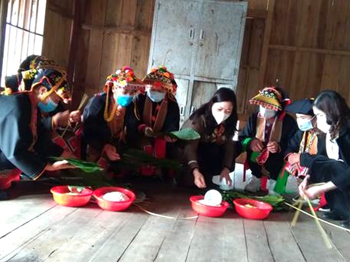 Tham gia gói bánh chưng với phụ nữ dân tộc Tham dự chương trình, có các đồng chí Trần Văn Tuấn - TUV – Phó trưởng Đoàn Đại biểu Quốc Hội tỉnh, Ngụy Thị Tuyến – TUV, Chủ tịch Hội LHPN tỉnh, Đỗ Văn Cầm – Phó Bí thư thường trực huyện ủy Sơn Động.