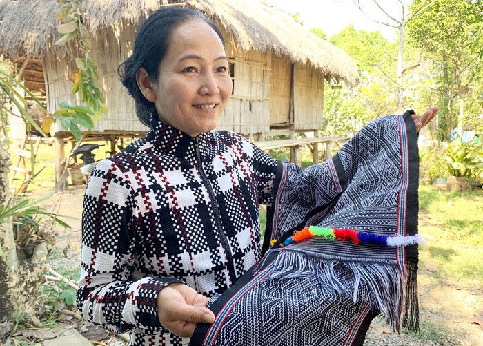 Chị Ka Rỉn, nghệ nhân dệt thổ cẩm của làng dân tộc Châu Mạ tại xã Tà Là, huyện Tân Phú.