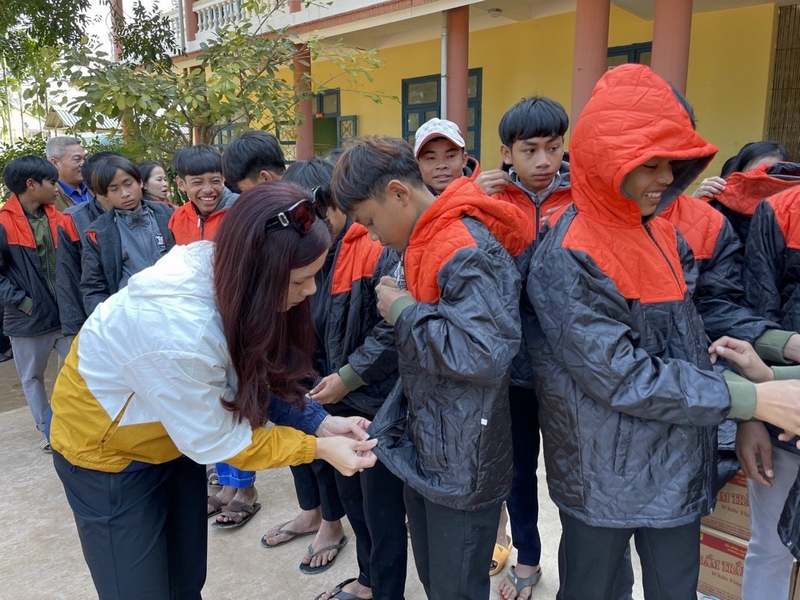 Doanh nhân Nguyễn Thị Tuyết trong một chuyến từ thiện.