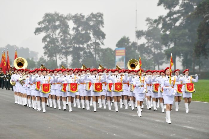 Trong đội hình đó, có hơn 600 đồng chí nữ quân nhân và dân quân tự vệ được lựa chọn ở các đơn vị trong toàn quân, tham gia đội hình của 5 khối nữ: Sĩ quan Quân y, Quân nhạc, Lực lượng Gìn giữ hòa bình Việt Nam, Du kích miền Nam và Dân quân Tây Bắc. Trong quá trình thực hiện nhiệm vụ, lực lượng của khối nữ đã nỗ lực luyện tập, đảm bảo chất lượng và tiến độ theo kế hoạch. Quá trình tập luyện, mặc dù gặp một số khó khăn nhất định, song chị em đã cố gắng, xác định rõ tư tưởng, ý chí quyết tâm cao để hoàn thành xuất sắc nhiệm vụ được cấp trên tin tưởng, giao phó.